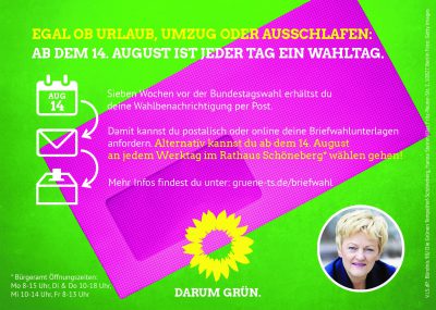 Wichtig: Diesmal wird die Briefwahl verdammt knapp! Deshalb: Holen Sie sich Ihre Briefwahlunterlagen direkt im Bezirksamt und geben Sie sie dort auch ab!