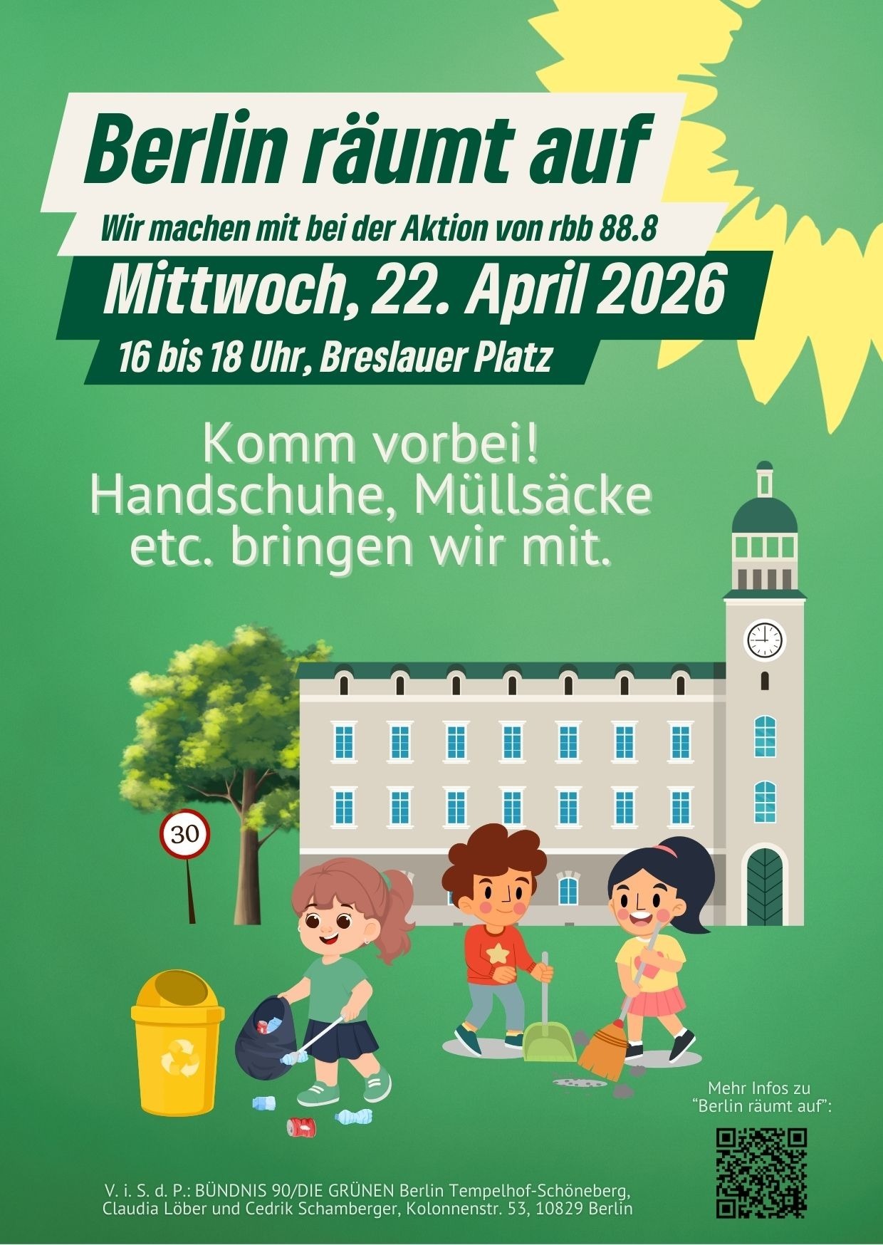In diesem Sinne widmen wir uns am 22.4. anlässlich der „Berlin räumt auf” Aktion des RBB von 16–18 Uhr dem Breslauer Platz.