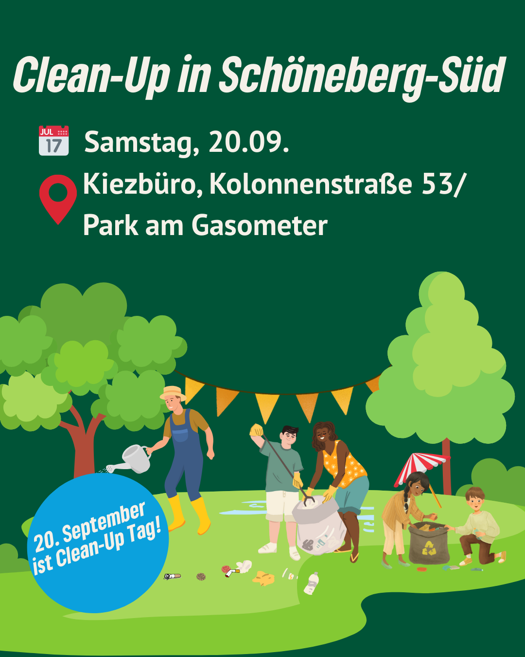 es ist wieder soweit: Der Clean-Up Day steht vor der Tür – und wir freuen uns sehr, wenn ihr auch dieses Jahr wieder mit dabei seid! 🗓 Wann? Samstag, 20. September, ab 12:30 Uhr📍 Wo? Treffpunkt ist das Kiezbüro in der Kolonnenstraße. Von dort aus geht’s gemeinsam zum Park am […]