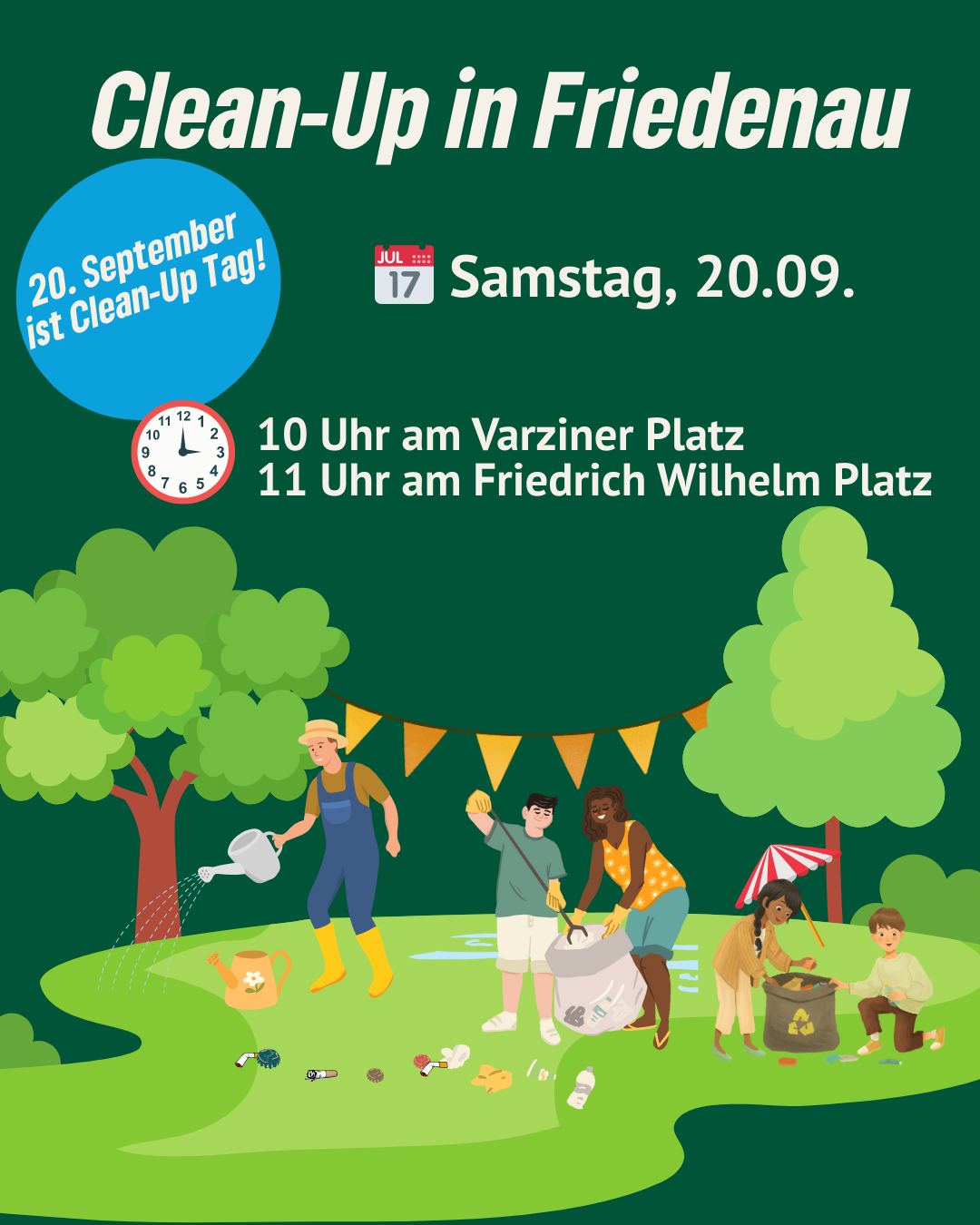 🧹💪 Andere reden davon, wir tun es! Wir laden euch herzlich ein zur Clean-Up-Aktion in Friedenau ein: Alle Infos📅 Samstag, 20.09.2025⏰ 10:00-12:00 Uhr📍 10 Uhr am Varziner Platz, 11 Uhr am Friedrich Wilhelm Platz 🧹Müllsäcke und Greifwerkzeug werden wir mitbringen. Falls ihr noch nie dabei wart: Die Leute freuen sich […]