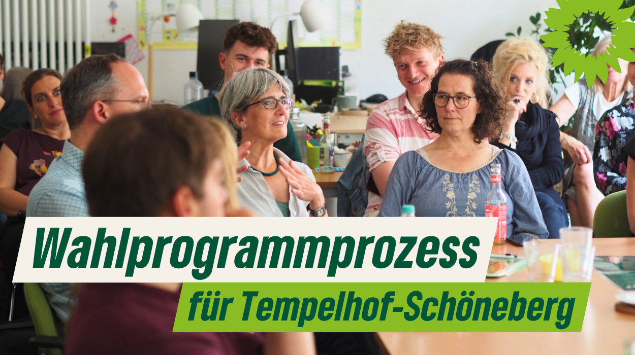 Wir sammeln unsere Ideen für Tempelhof-Schöneberg! In unserer Bezirksgruppe am 3. Juni haben wir den Wahlprogrammprozess für die Wahl zur Bezirksverordnetenversammlung (BVV) 2026 gestartet. Dafür wollen wir ein starkes bündnisgrünes Programm für Tempelhof-Schöneberg entwickeln, mit konkreten Zielen für die nächsten fünf Jahre hier im Bezirk. Um möglichst viele Ideen von Mitgliedern und Anwohnenden aufzunehmen, gliedert sich der Prozess in drei Phasen: